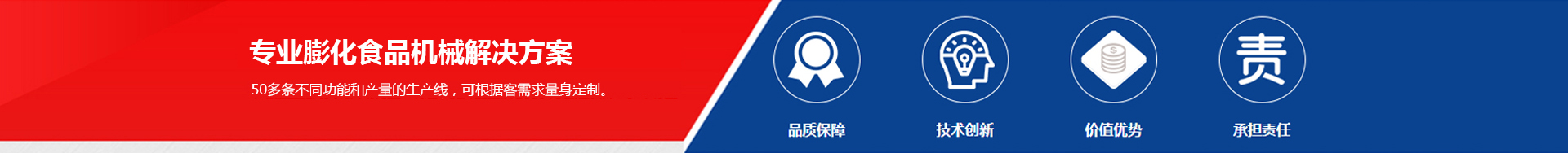 擠壓膨化技術(shù)作為一種經(jīng)濟實用的新型加工方法廣泛應用于食品生產(chǎn)中,并得到了迅速的發(fā)展。采用擠壓技術(shù)來加工谷物食品,在原來初步分隨和混合后,即可在擠壓機中一次完成混煉、熟化、破碎、殺菌、成型等工藝,制作膨化產(chǎn)品。在經(jīng)油炸(或不經(jīng)油炸)、烘干、調(diào)味后即可上市銷售。只要簡單地更換模具,便可方便地改進產(chǎn)品形狀…